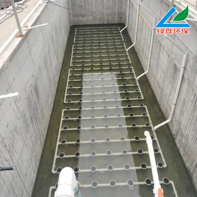 空气管设计应考虑压力平衡,最好联成环状网,每组进气管应设置阀门,便于调节空气量。空气管设计流速:干管为10-15米/秒;支管为5米/秒。曝气器表面距池底安装高度:270mm、250mm,推板式为200mm。